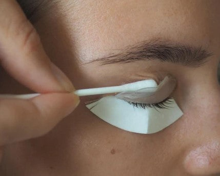 (Wenn das Lifting zu zweit durchgeführt wird, ist es hilfreich die unteren Wimpern abzukleben.)