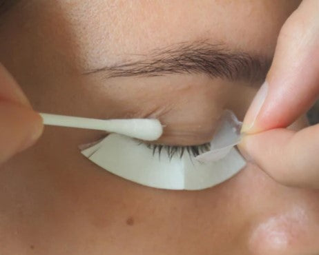 Reinige das Augenlid mit dem Cleanser - Clean 4 - um Kleberückstände zu entfernen.